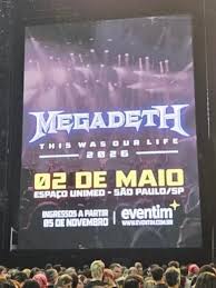 A banda liderada por Dave Mustaine traz sua turnê chamada de despedida, “This Was Our Life”, para o dia 2 de maio de 2026. A apresentação ocorre no Espaço Unimed, em São Paulo. Os ingressos estarão disponíveis a partir do dia 5 de novembro, pelo site da Eventim.